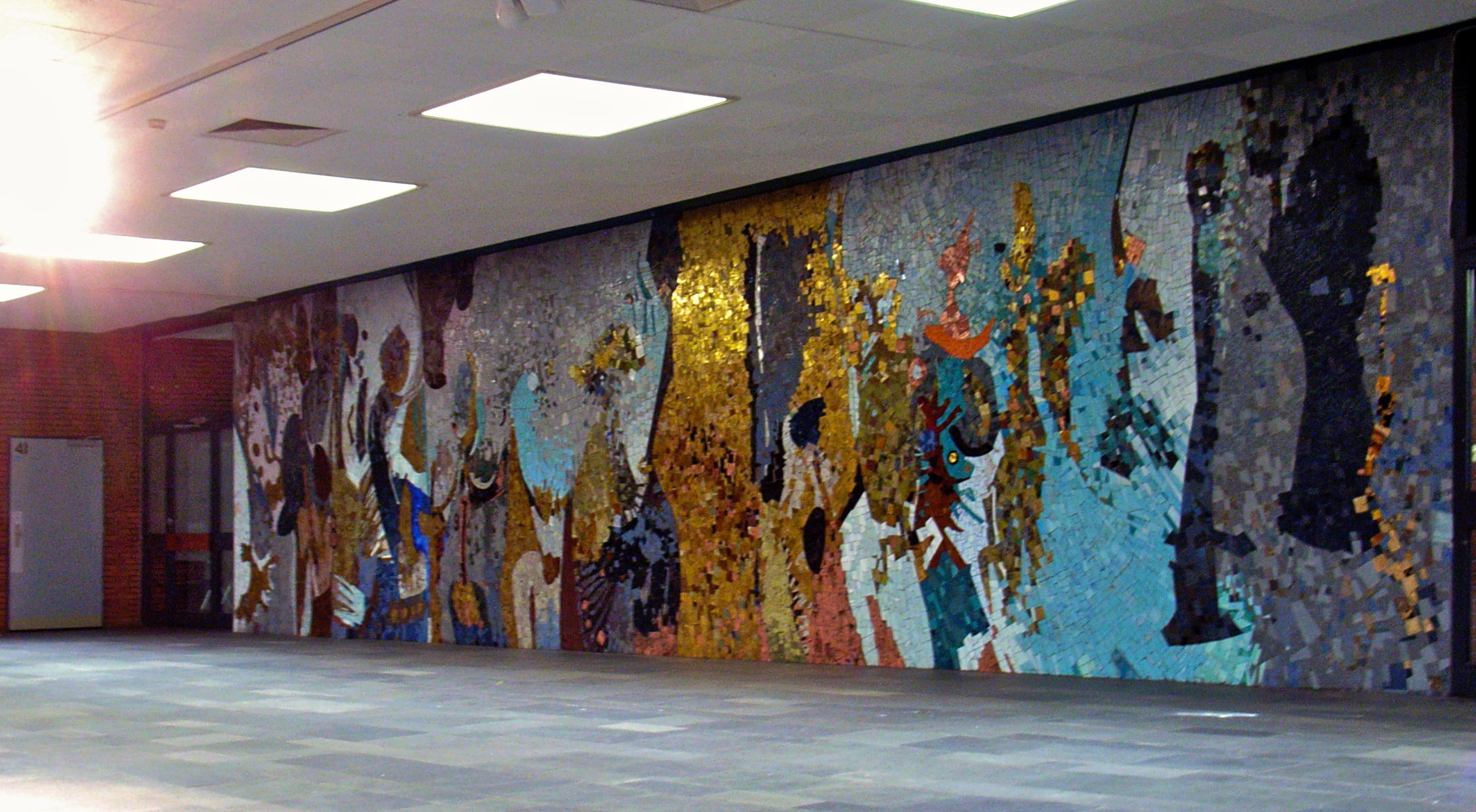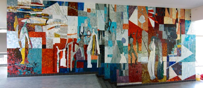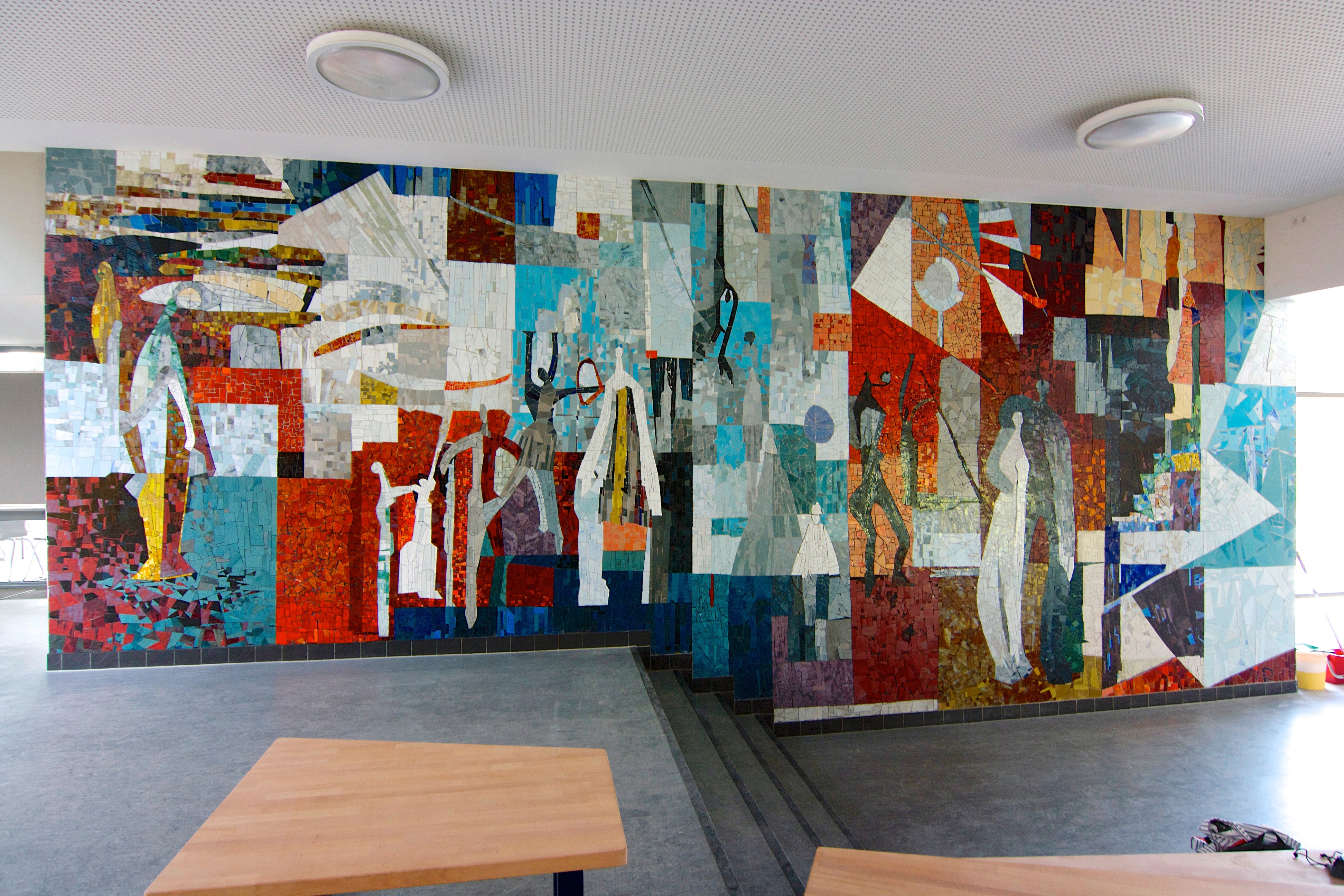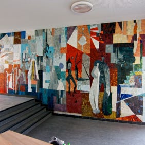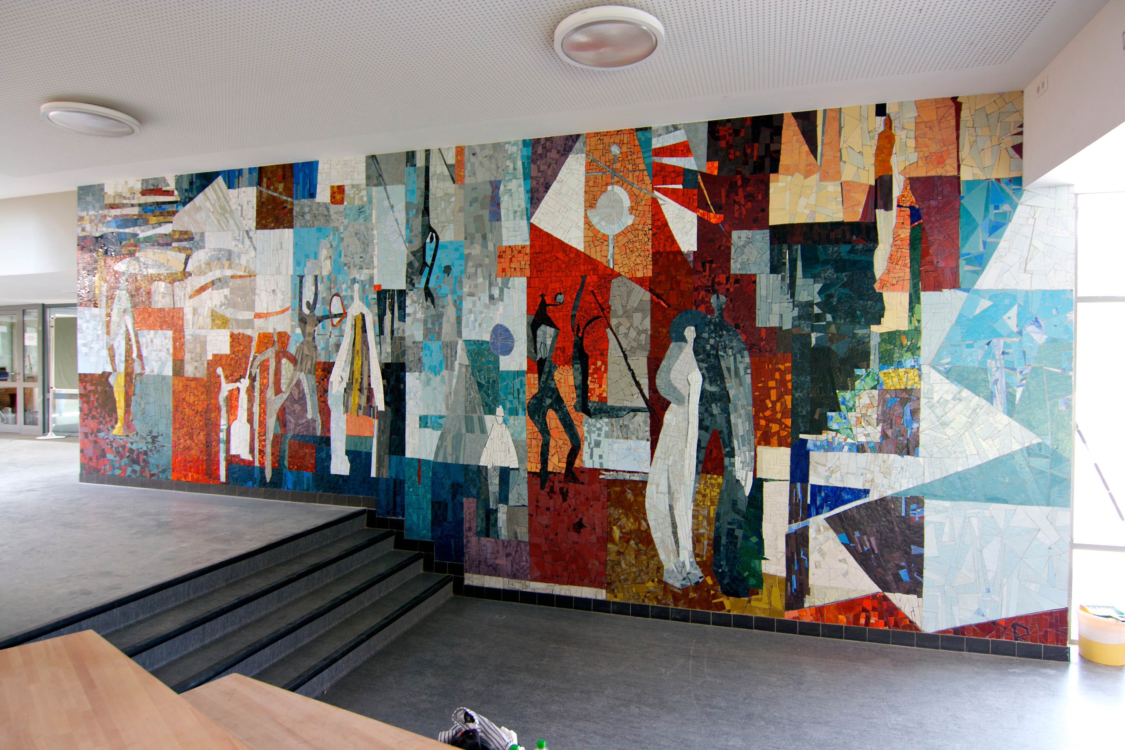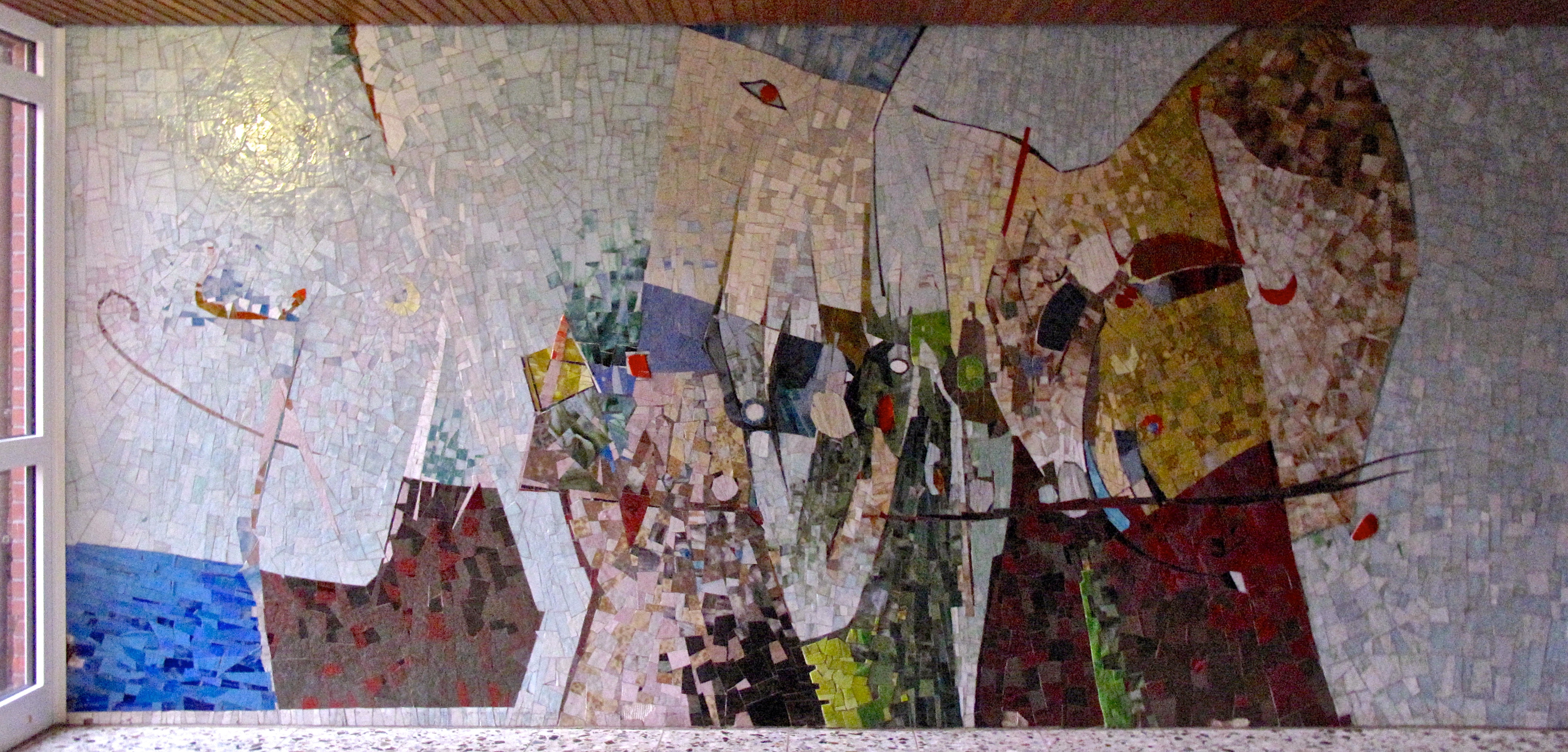 „Erzählung“ - 1965/66 - Glasmosaik - Pausenhalle Theodor-Storm-Schule - Husum - ca. 4,00x10,00m