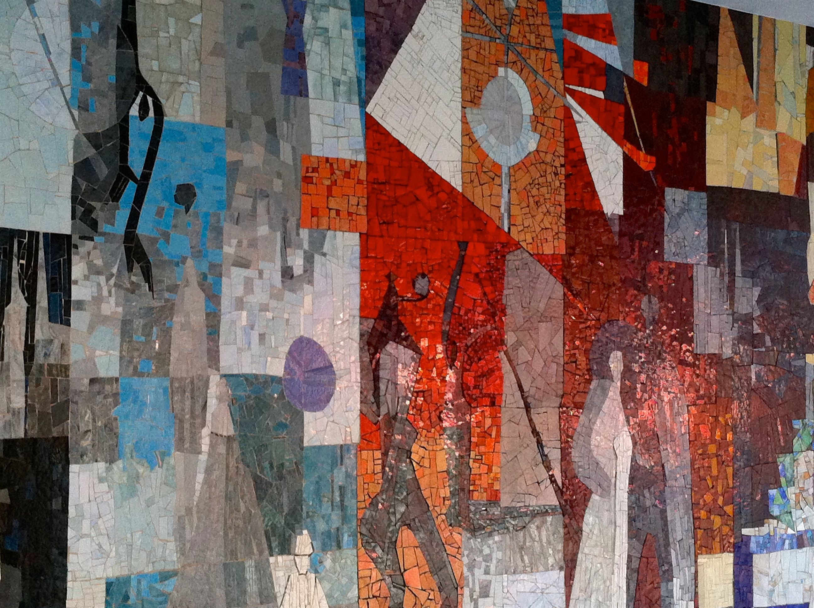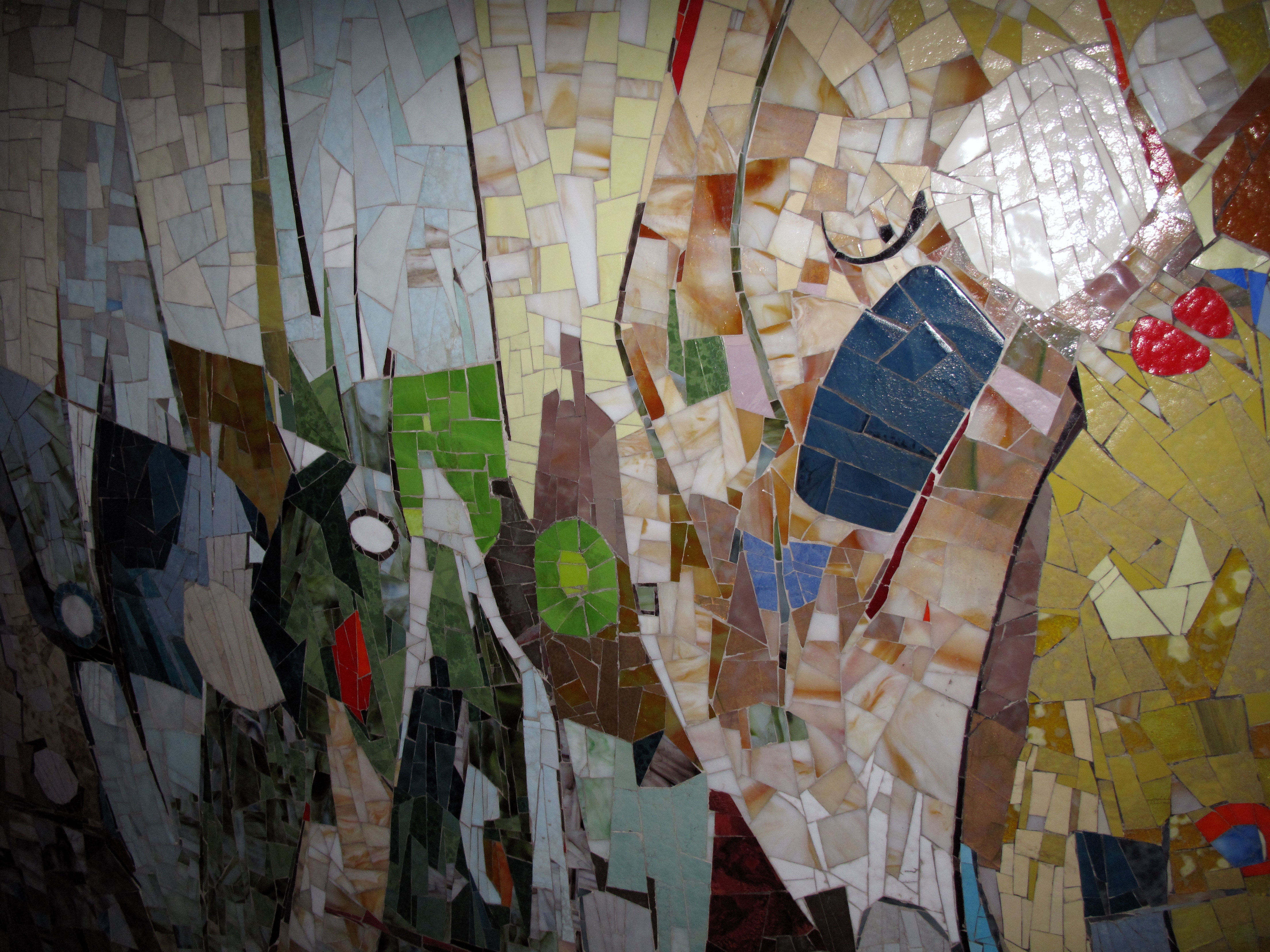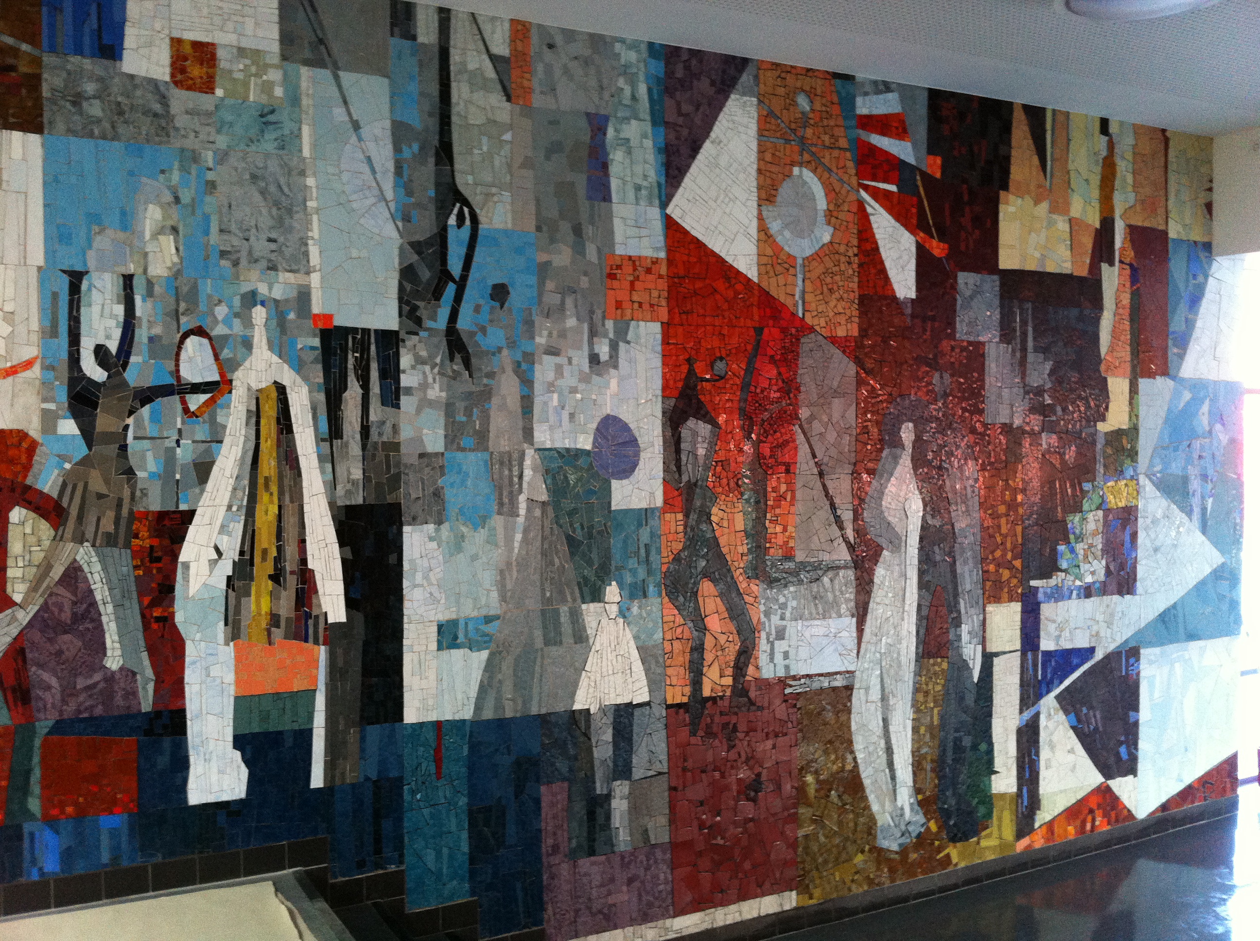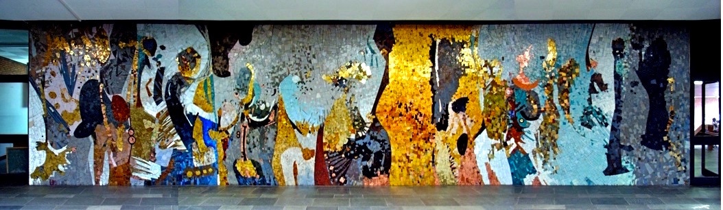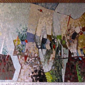 „Erzählung“ - 1965/66 - Glasmosaik - Pausenhalle Theodor-Storm-Schule - Husum - ca. 4,00x10,00m