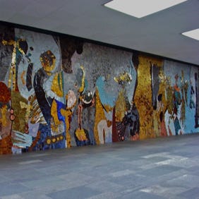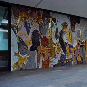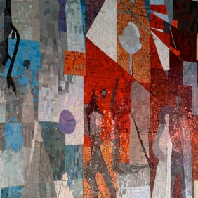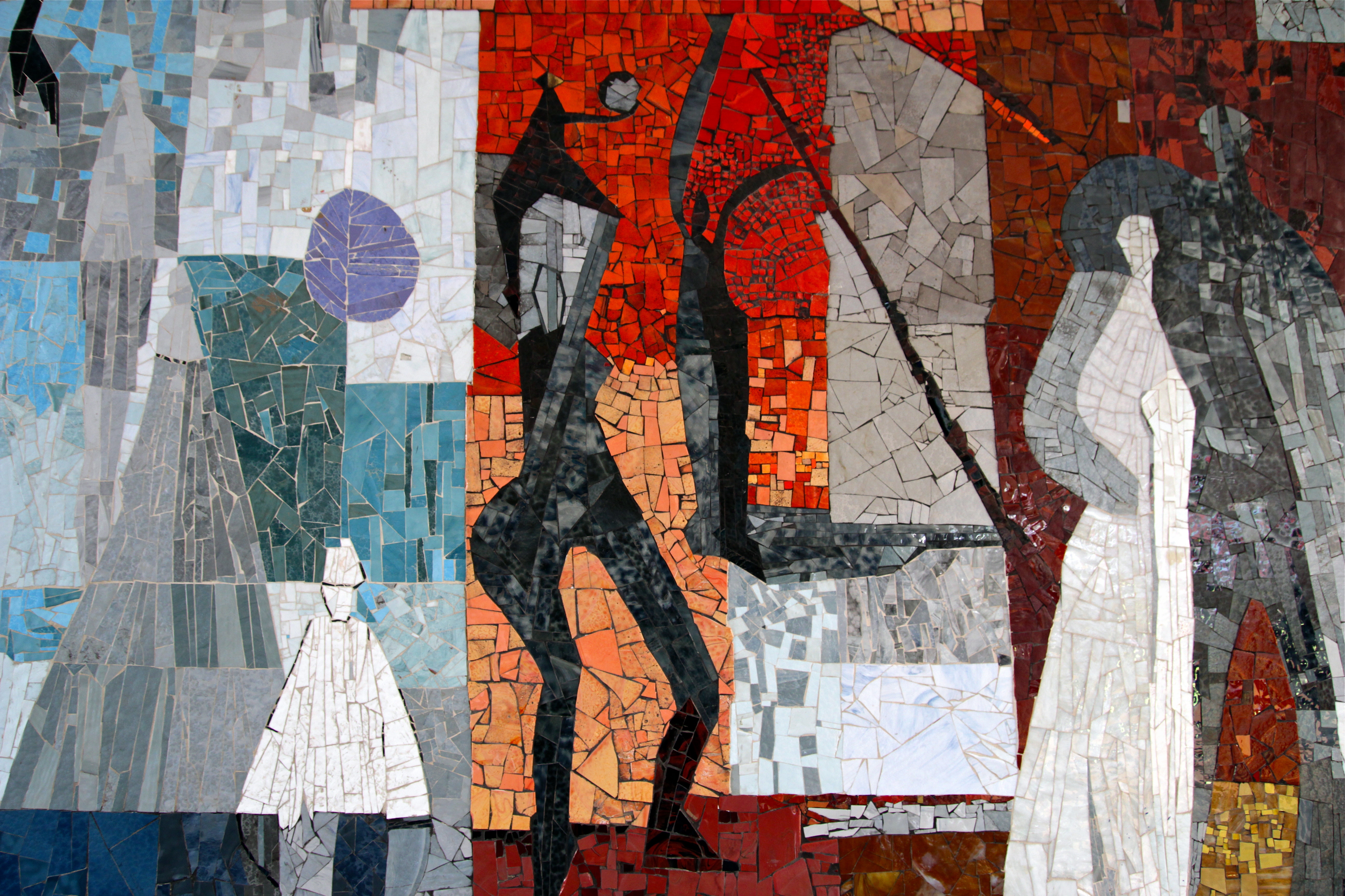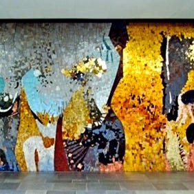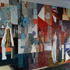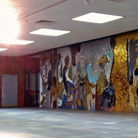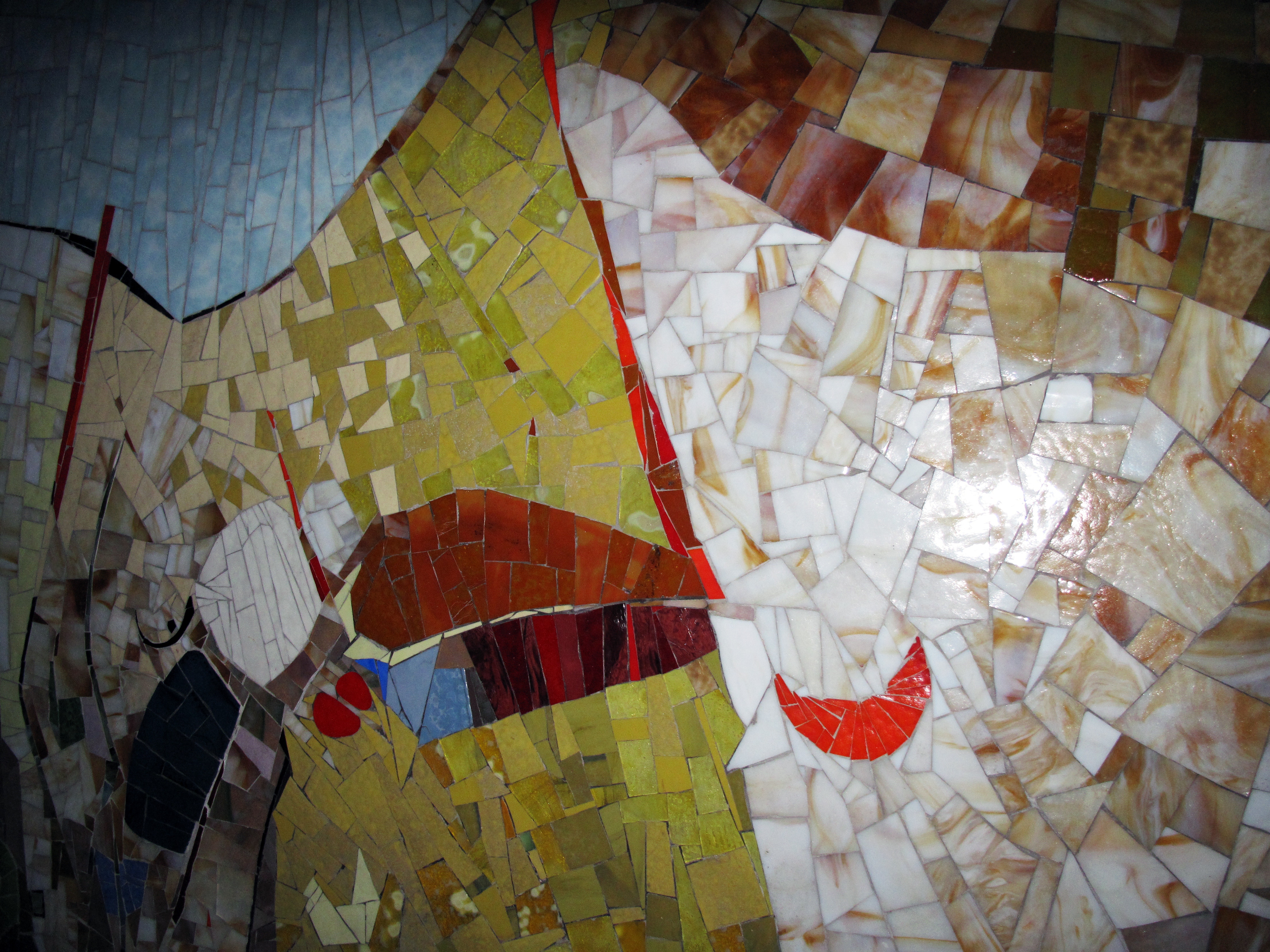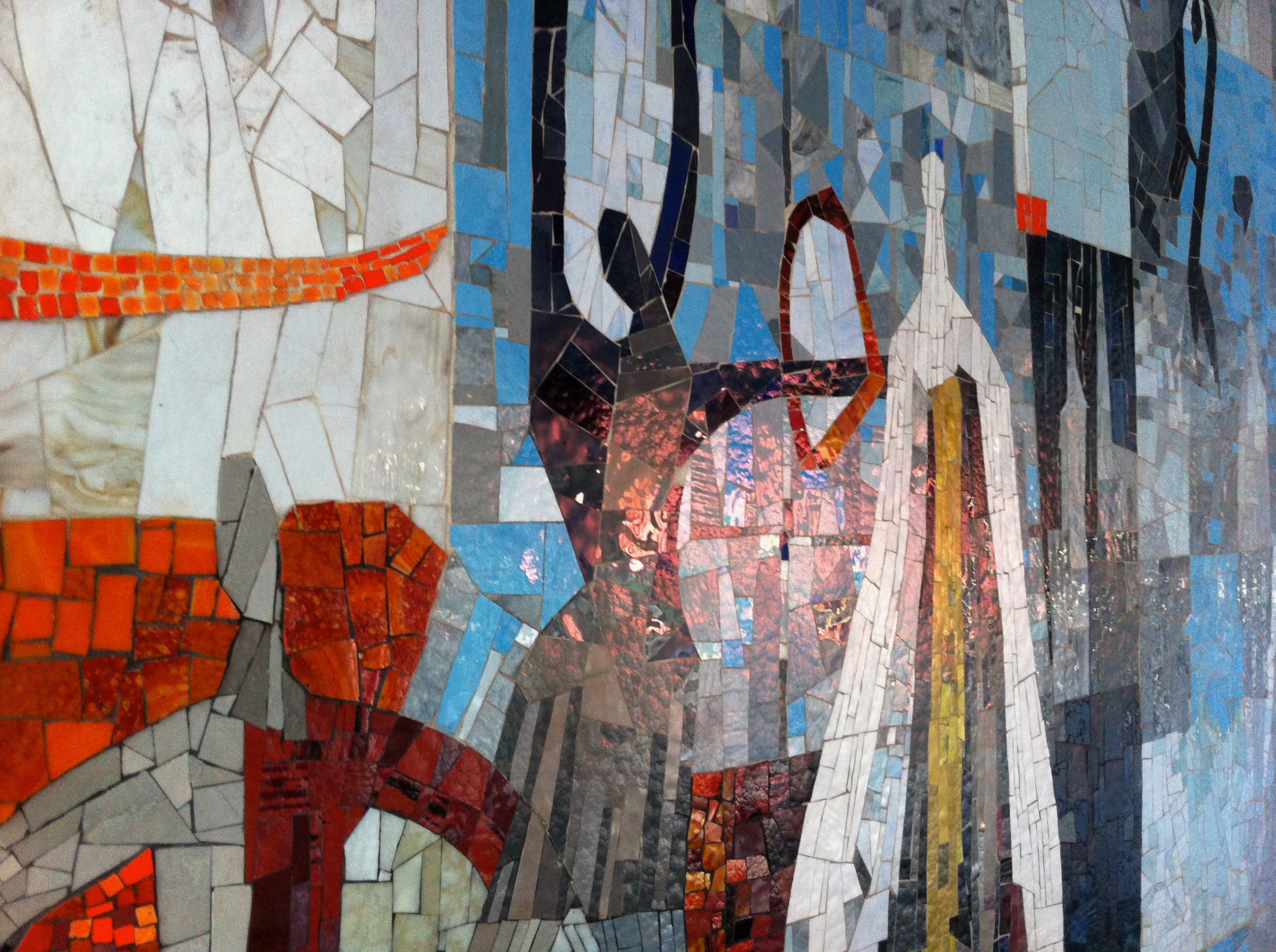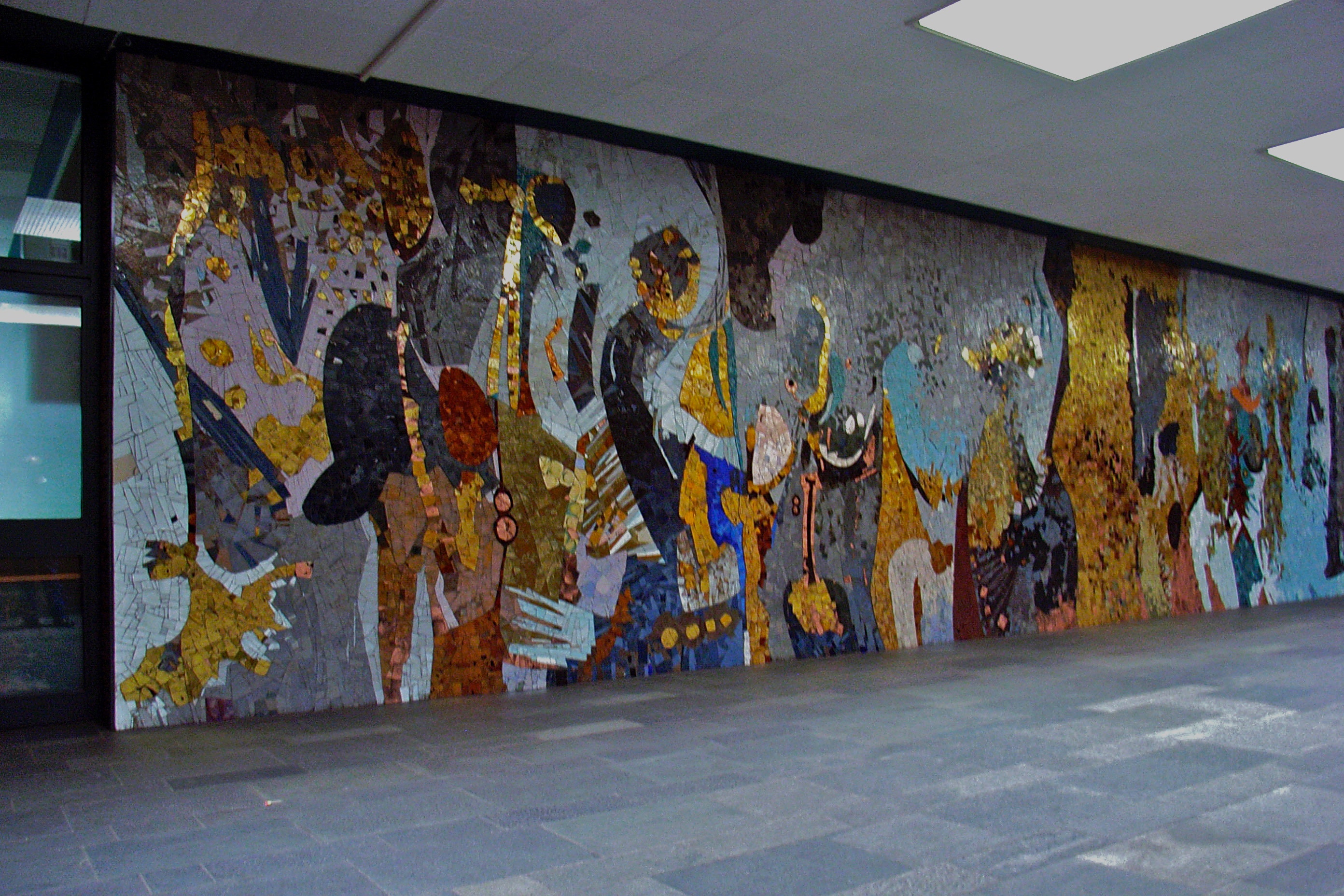 „Erzählung“ - 1965/66 - Glasmosaik - Pausenhalle Theodor-Storm-Schule - Husum - ca. 4,00x10,00m