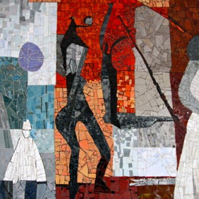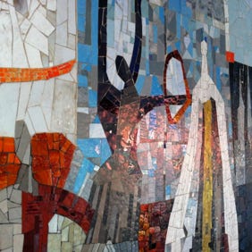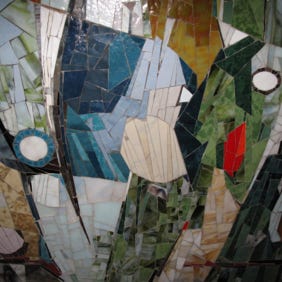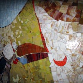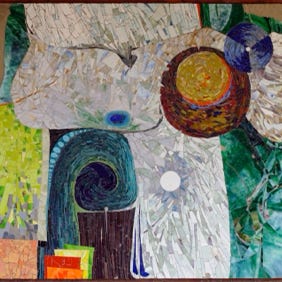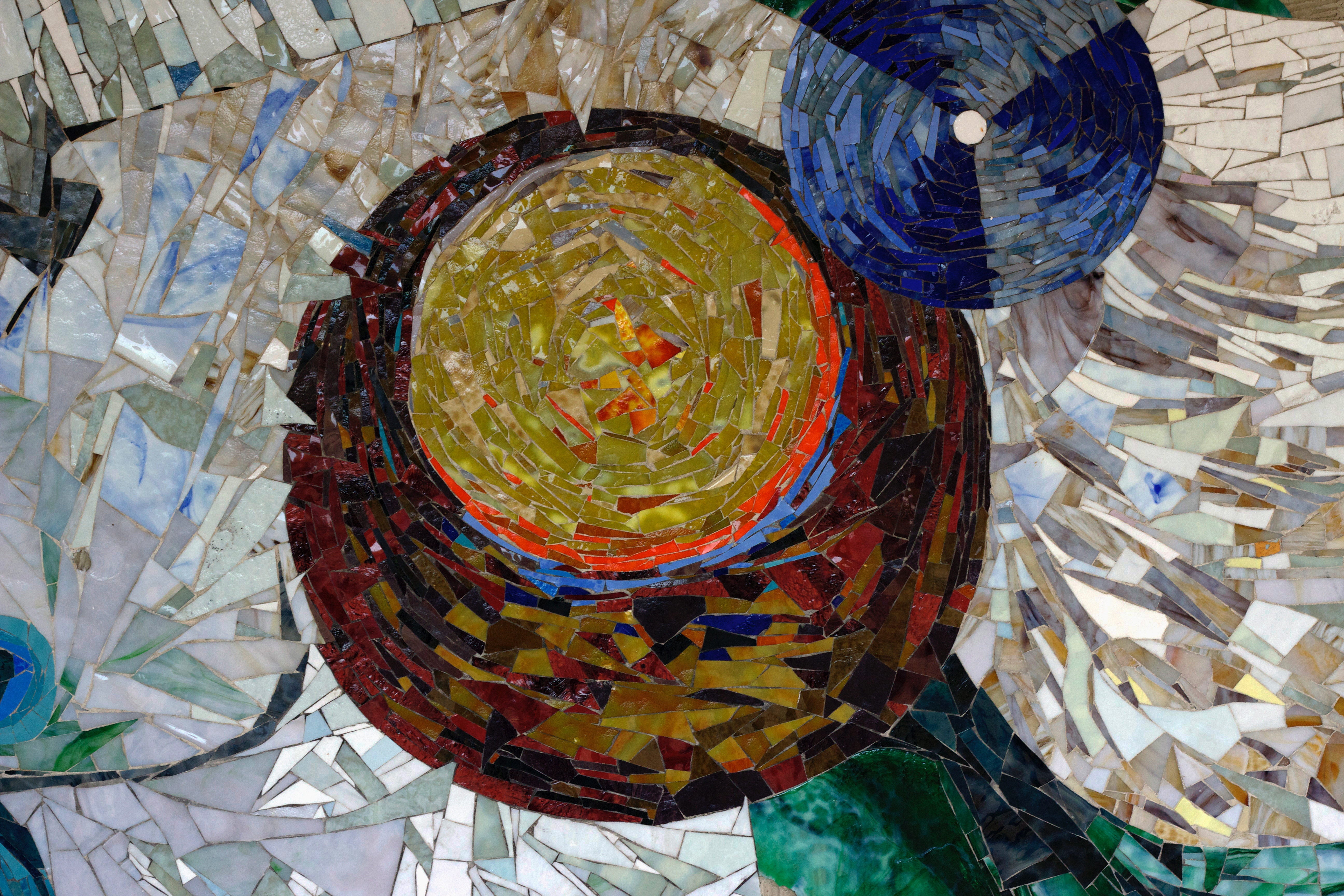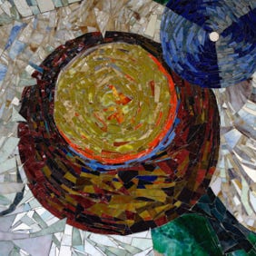 Diese Abbildung zeigt eine von der einklappbaren Text-Fahne abgedeckte Abbildung meines Mosaiks „Ursprung“ (s. oben)