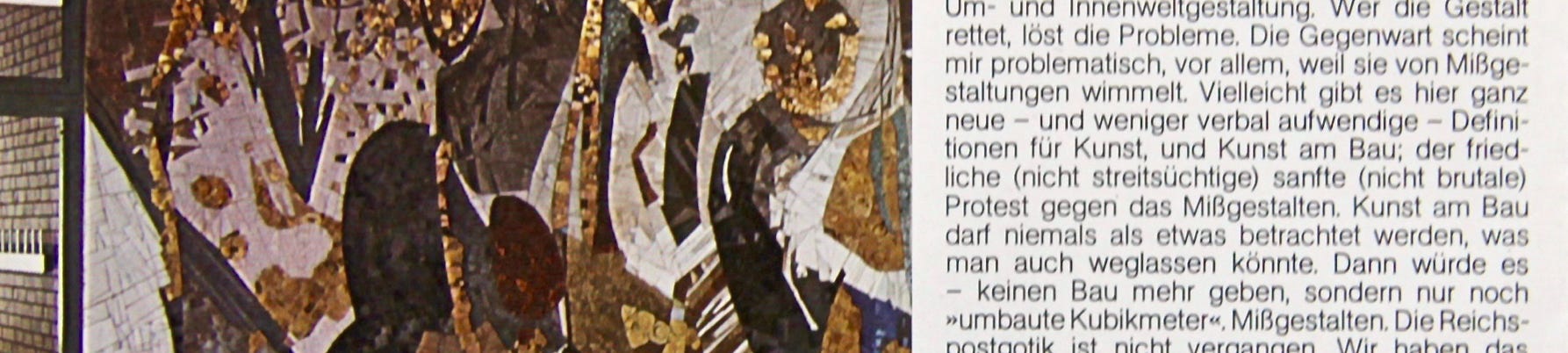 Mit dem Inhalt meines Textes nutzte ich die Möglichkeit - im Rahmen dieser Ausstellung - meine damalige Haltung, meine Einstellung und Motivation zu meinem Schaffen innerhalb dieses Arbeitsbereiches - Kunst am Bau - erklärend zu vermitteln.