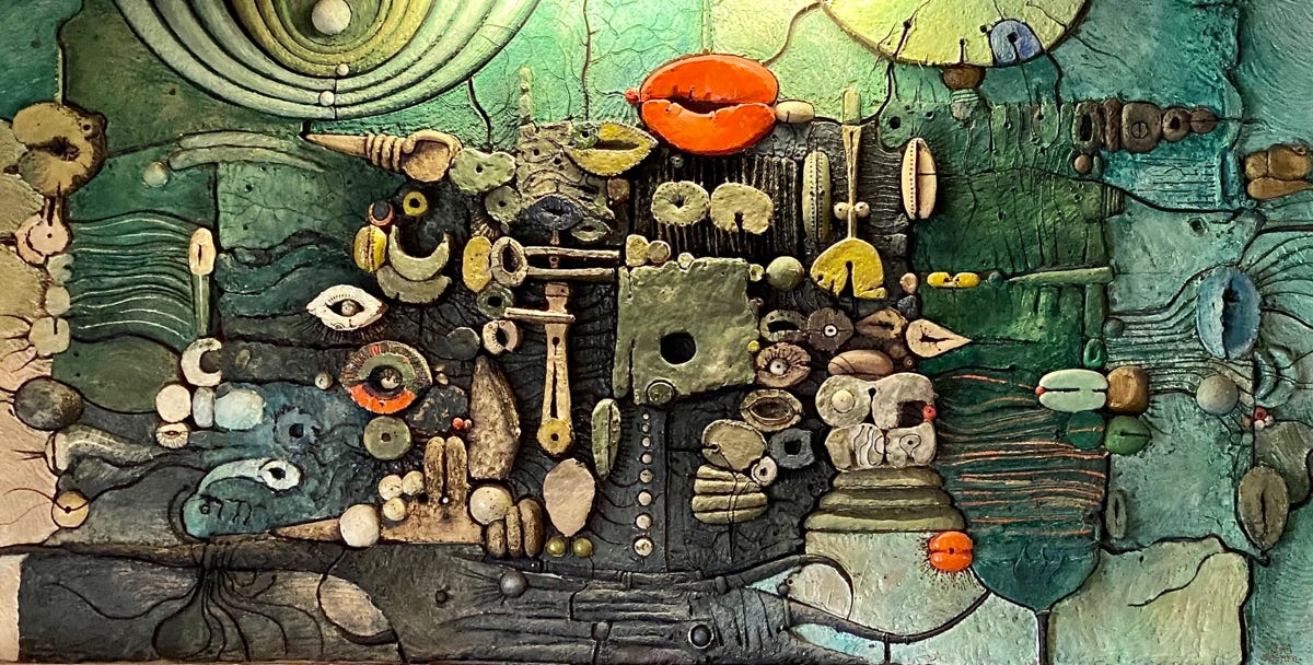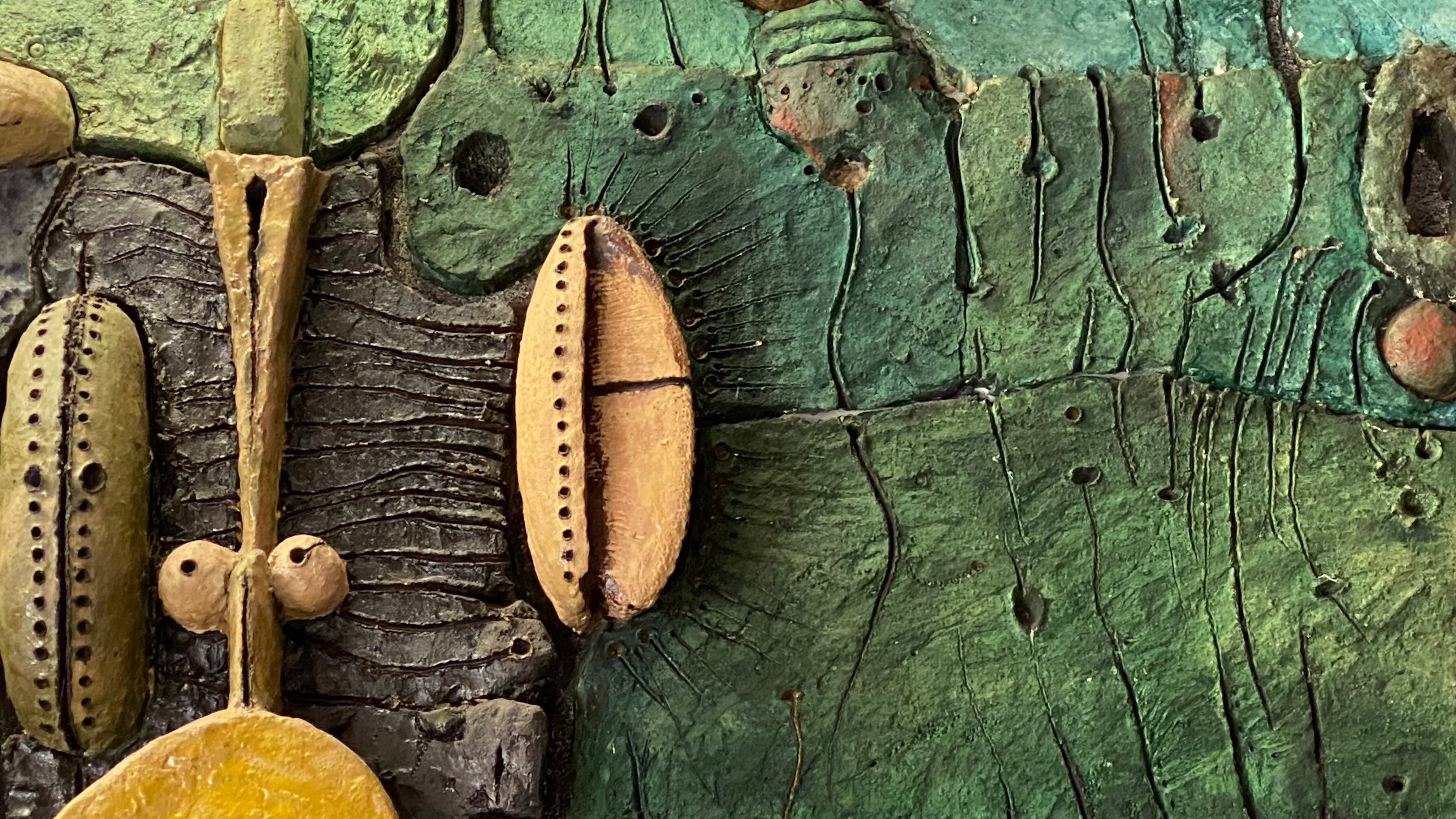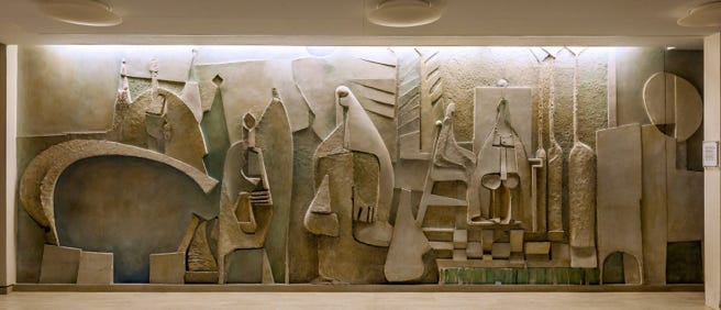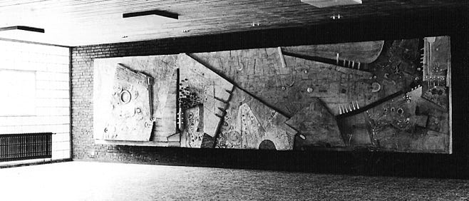 „Cosmographie“ - 1976 - Strukturrelief/Keramik - 160 x 350cm - Offiziersheim LTG 63 - Krummenort