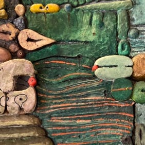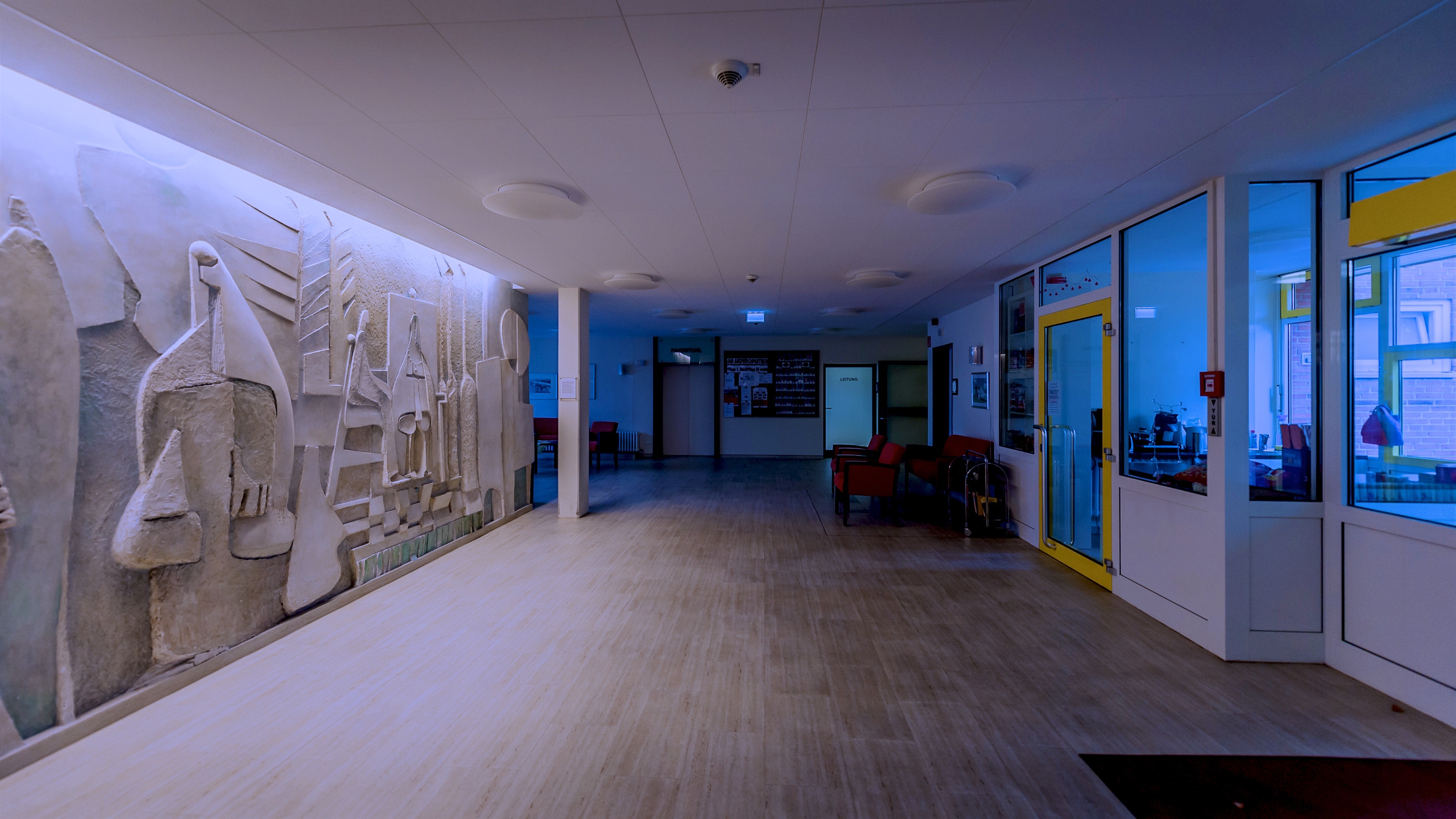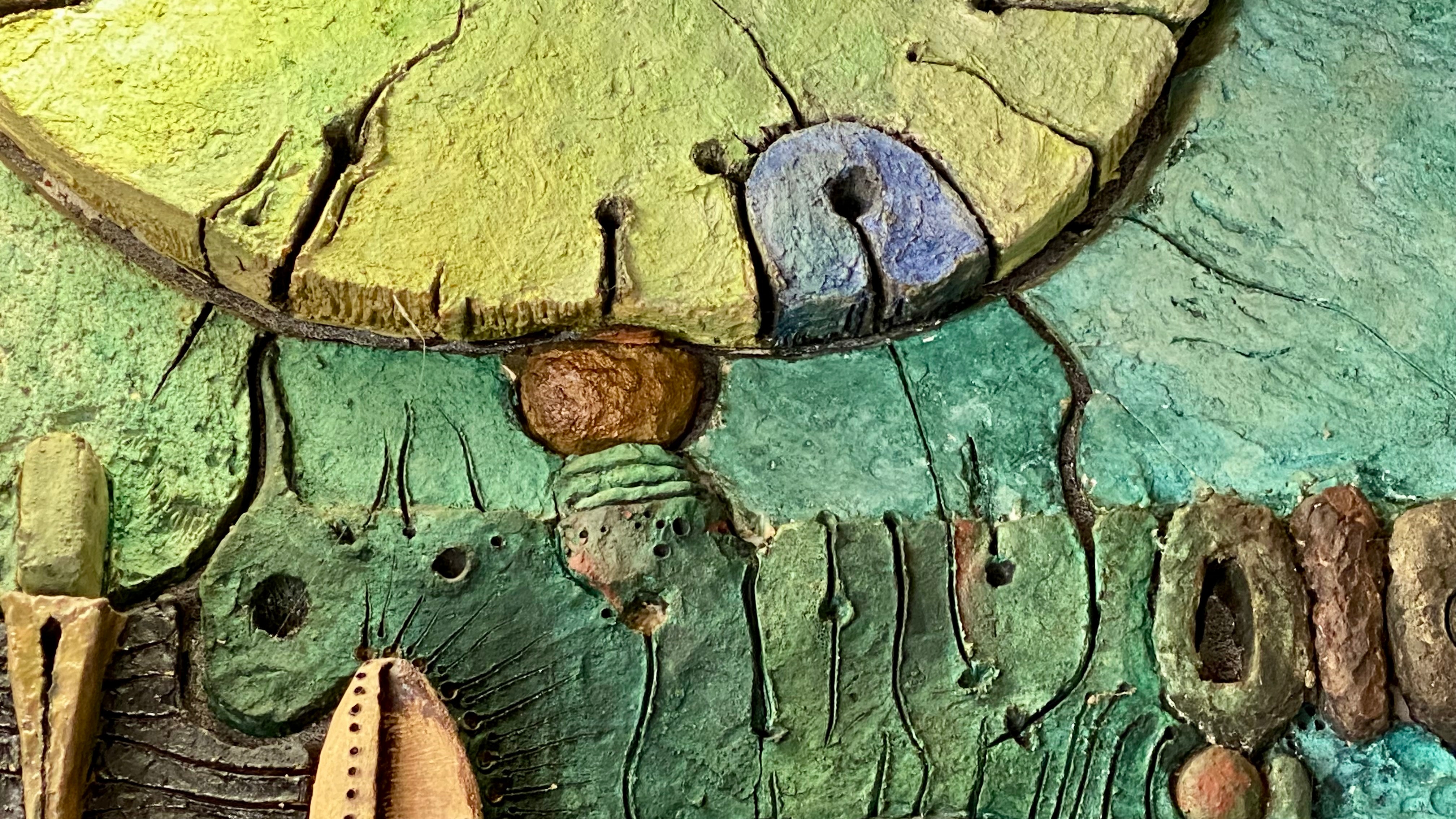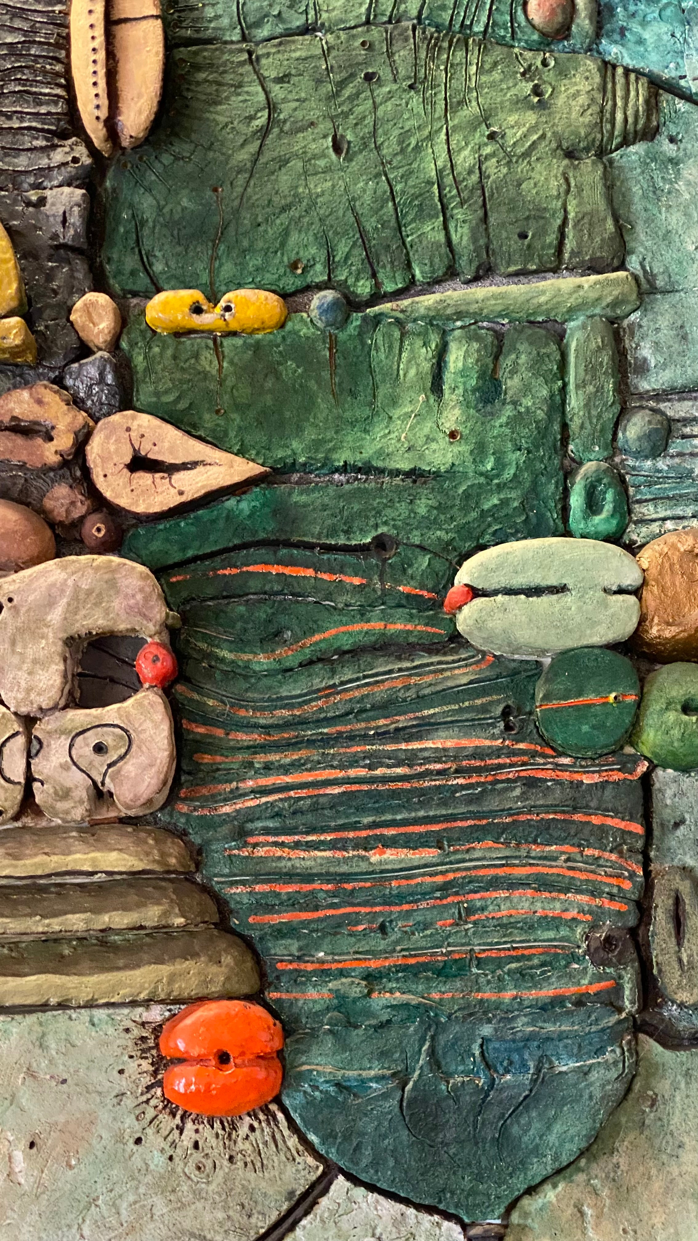 „Topographie“- 1967/68 - Strukturrelief/Beton - polychromiert - ca. 180x800cm - Schule Büdelsdorf