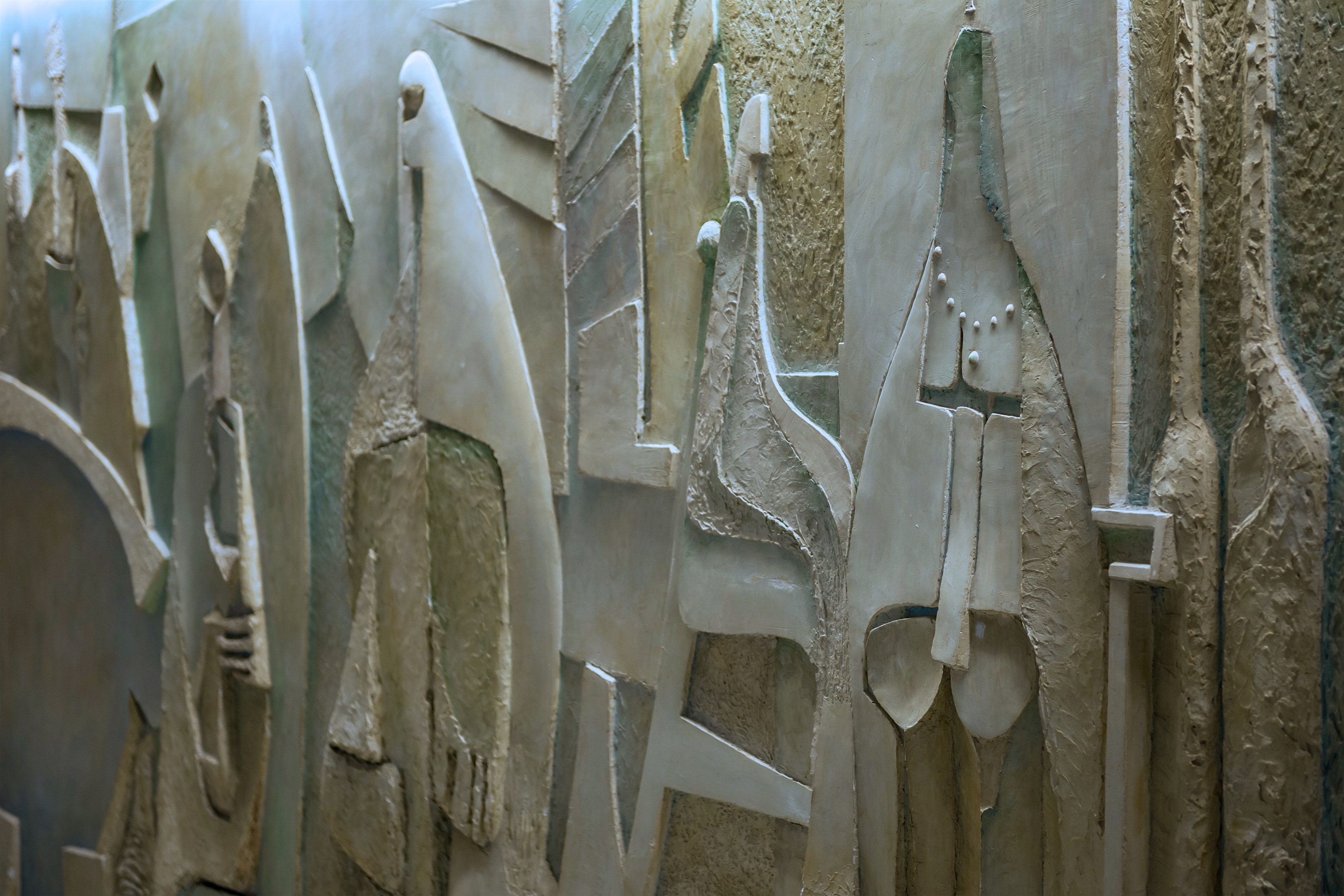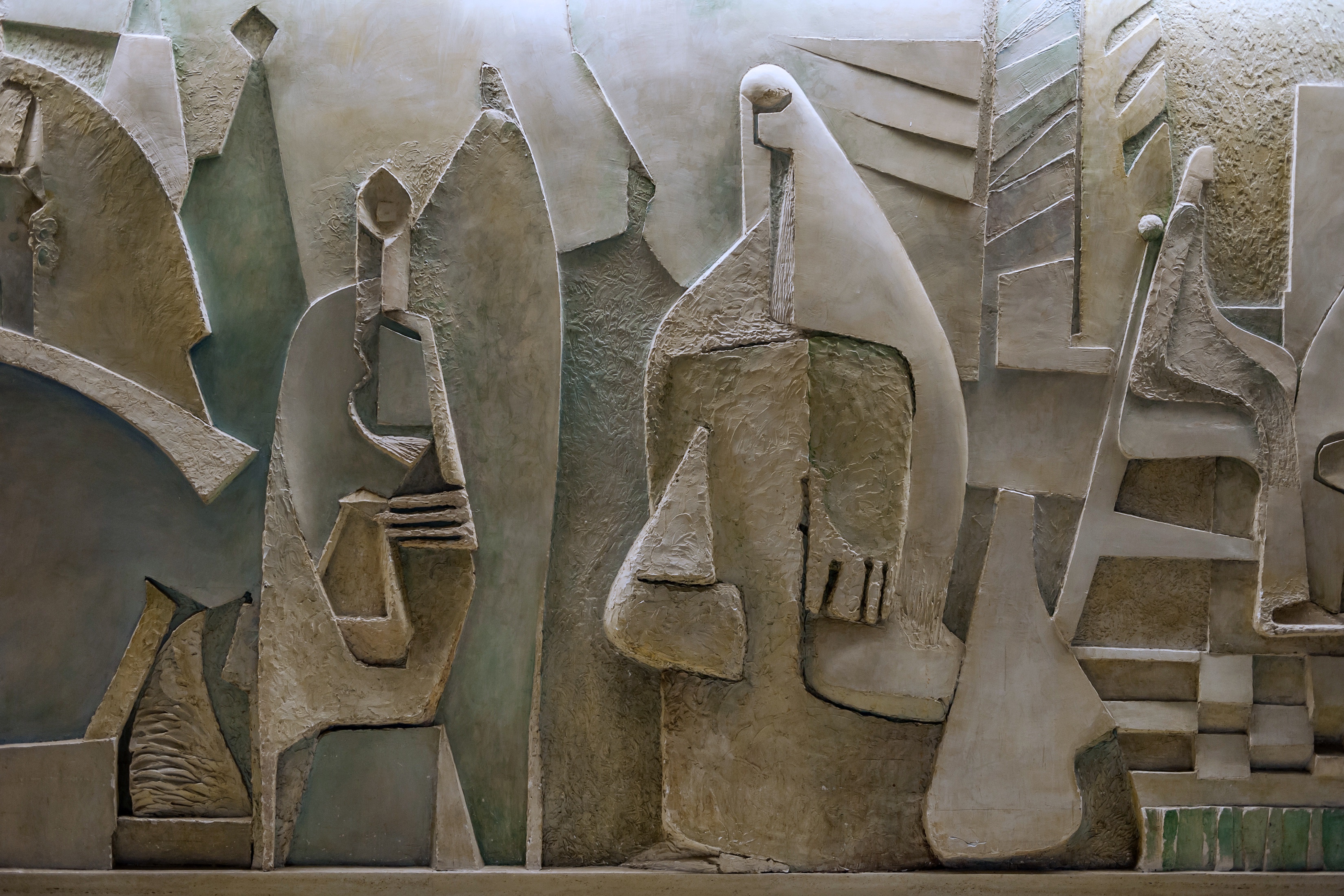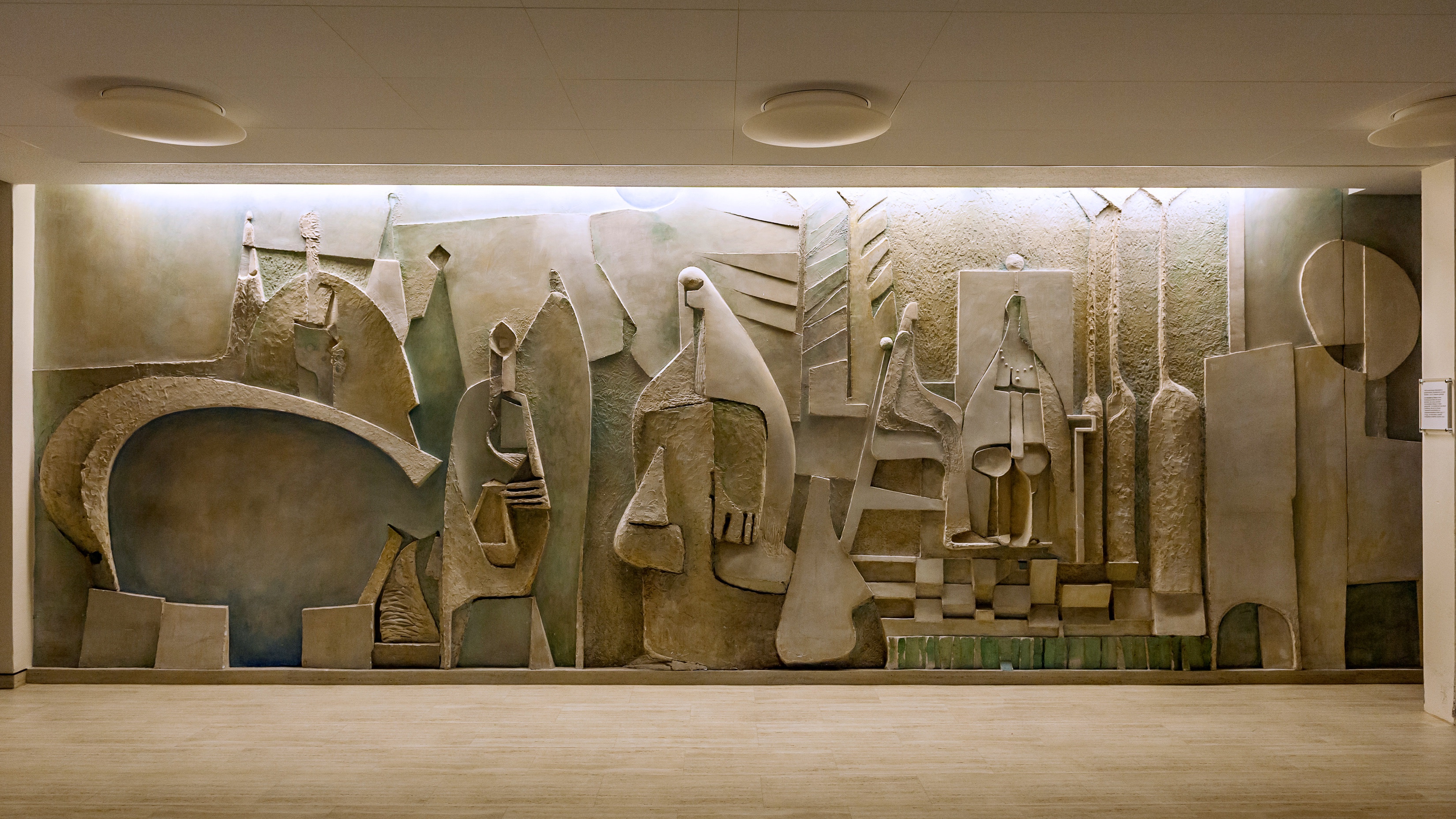 „Hochzeit zu Kana“ - 1964/65 - Stuckrelief, Gips, polychromiert/Wachs Enkaustik - ca. 2,60x7,00m - Senioreneinrichtung - Lübeck
